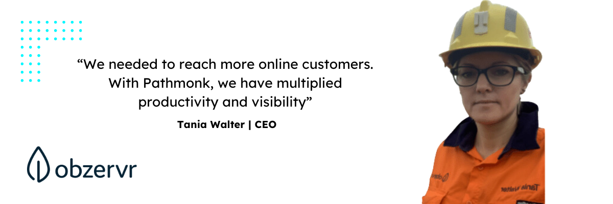 - Solution: CEO Tania Walter sought to optimize the buying journey without overhauling the website. Turning to Pathmonk, Obzervr was able to tailor website interactions to user needs, enhancing the buying experience and guiding prospects through the decision-making process. Pathmonk’s integration facilitated targeted content delivery at various journey stages and enabled personalized experiences, driving user engagement and conversions without necessitating website changes.