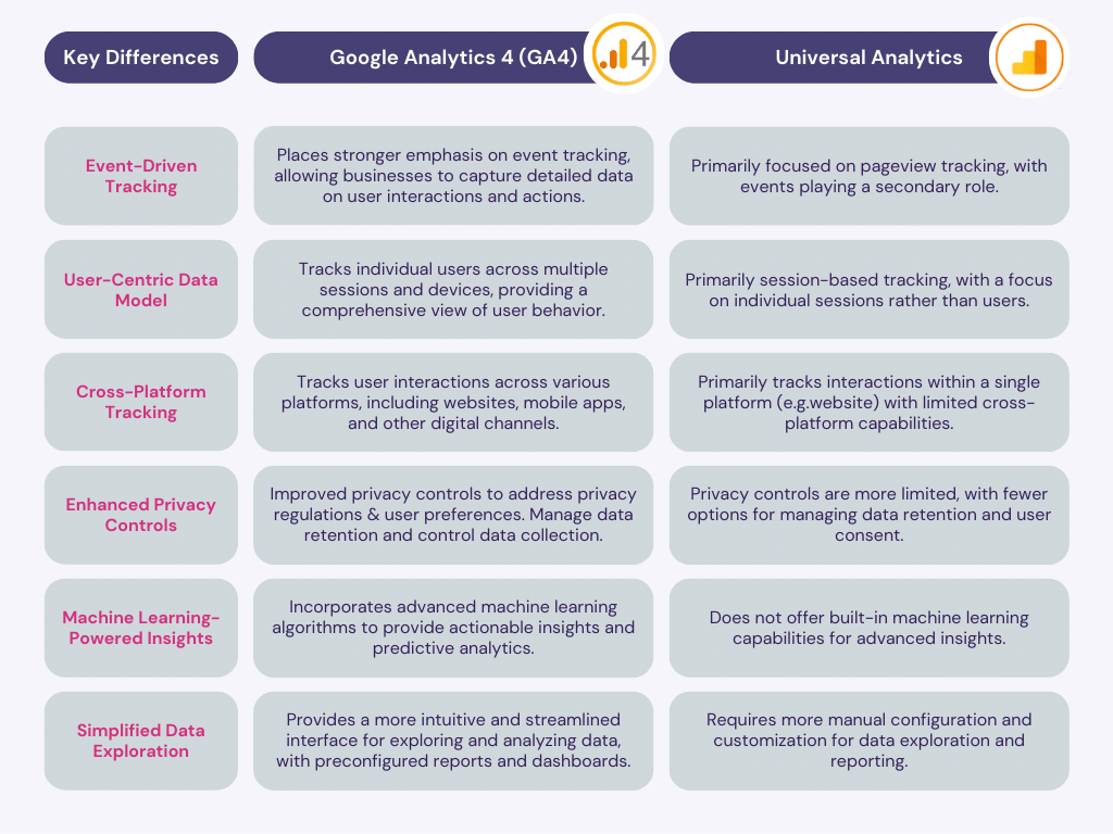 While GA4 builds upon the foundation of Universal Analytics, there are several key differences between the two versions: