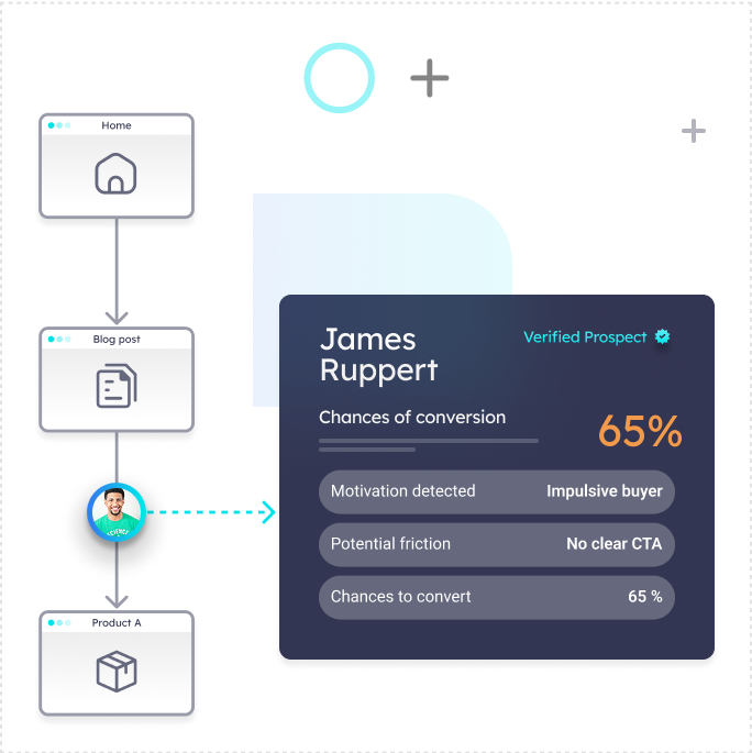 Our technology recognizes your visitors’ actions and translates them into patterns. This helps identify which visitors need guidance or show strong purchase intent