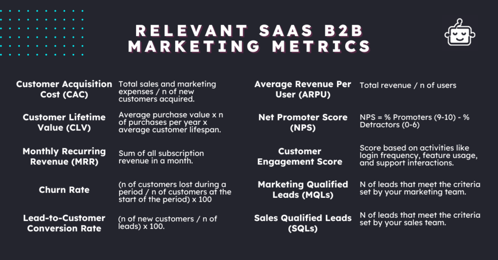 Now, let’s get to the heart of the matter. Here are the top 10 SaaS B2B marketing metrics you need to track, along with how to measure them and why they are important. Remember to save this content for later, in case you need some recap!